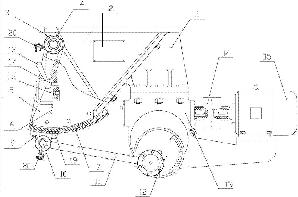 17、Screw         18、Handle           19、Pendulum liner       20、Oil cup